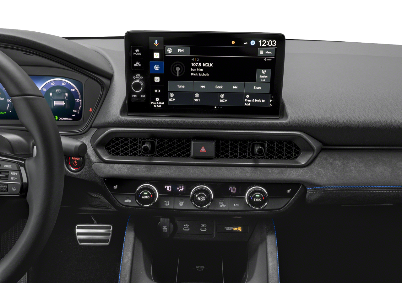 - Radio: Bose Premium Sound System -inc: 8 speakers w/subwoofer, 9" color touchscreen, Google and Alexa Built-in (includes 3 years unlimited data plan for in-vehicle apps), Bluetooth® HandsFreeLink and streaming audio, HondaLink, Speed-Sensitive Volume Compensation (SVC), Radio Data System (RDS), wireless Apple CarPlay and wireless Android Auto compatibility, USB-C 3.0A smartphone/audio interface and charging port, 12-volt power outlet, HD Radio and wireless phone charger