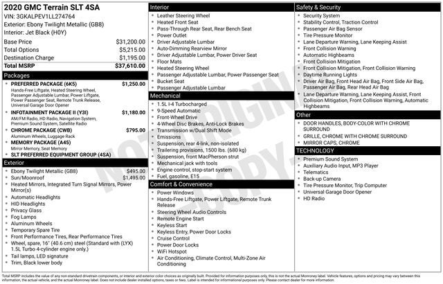 This 2020 GMC Terrain SLT is a certified pre-owned vehicle, meaning it has undergone a rigorous inspection and reconditioning process to ensure it meets the highest standards of quality and reliability. With its sleek Black exterior and well-appointed interior, this Terrain SLT is sure to turn heads wherever you go.