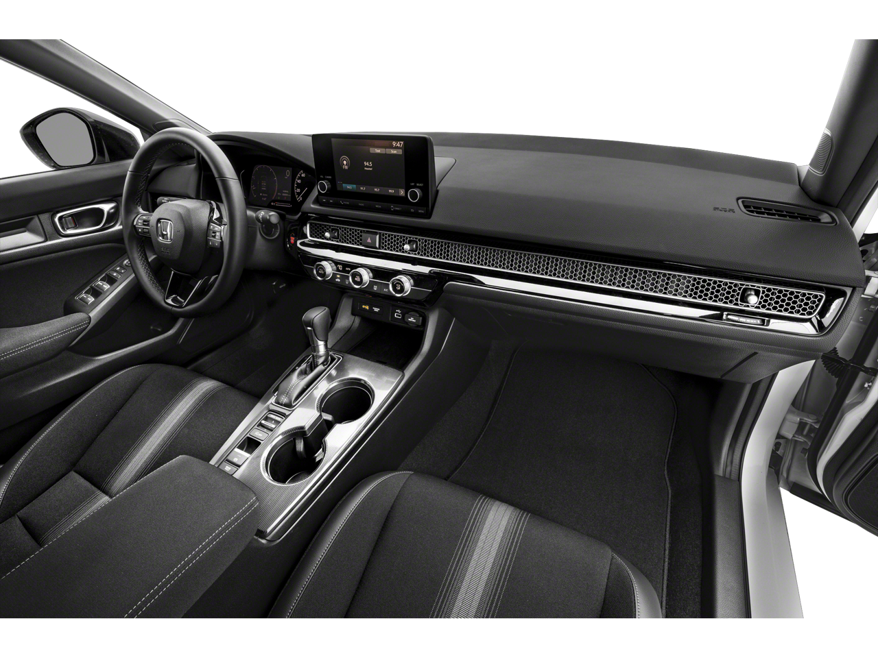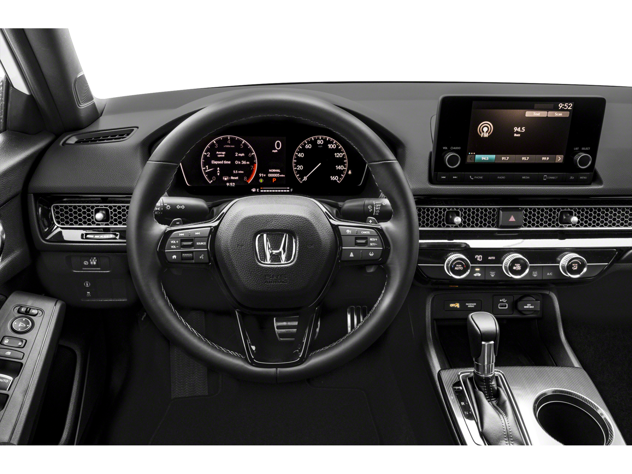 4-Wheel Disc Brakes, 8 Speakers, ABS brakes, Adaptive Cruise Control: Adaptive Cruise Control (ACC) with Low-Speed Follow, Air Conditioning, Alloy wheels, AM/FM radio, Apple CarPlay/Android Auto, Auto High-beam Headlights, Automatic temperature control, Brake assist, Bumpers: body-color, Cloth Seat Trim, Delay-off headlights, Driver door bin, Driver vanity mirror, Dual front impact airbags, Dual front side impact airbags, Electronic Stability Control, Emergency communication system: HondaLink, Exterior Parking Camera Rear, Four wheel independent suspension, Front anti-roll bar, Front Bucket Seats, Front Center Armrest, Front reading lights, Fully automatic headlights, Illuminated entry, Knee airbag, Leather Shift Knob, Leather steering wheel, Low tire pressure warning, Occupant sensing airbag, Outside temperature display, Overhead airbag, Panic alarm, Passenger door bin, Passenger vanity mirror, Power door mirrors, Power steering, Power windows, Radio data system, Radio: 180-Watt Audio System w/8 Speakers, Rear anti-roll bar, Rear side impact airbag, Rear window defroster, Remote keyless entry, Security system, Speed control, Speed-sensing steering, Steering wheel mounted audio controls, Tachometer, Telescoping steering wheel, Tilt steering wheel, Traction control, Trip computer, Wheels: 18 Gloss Black Alloy.
