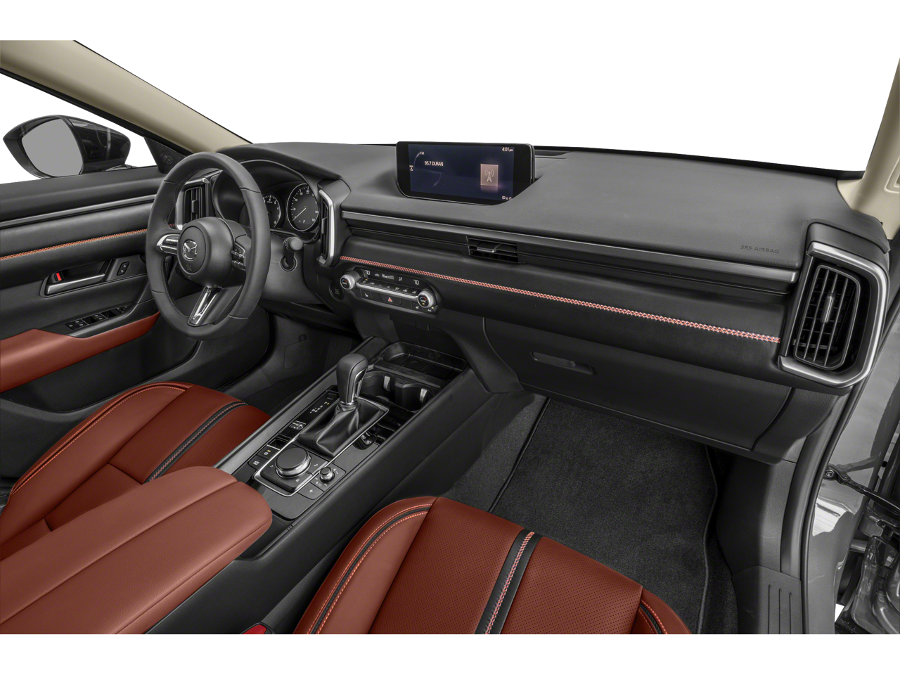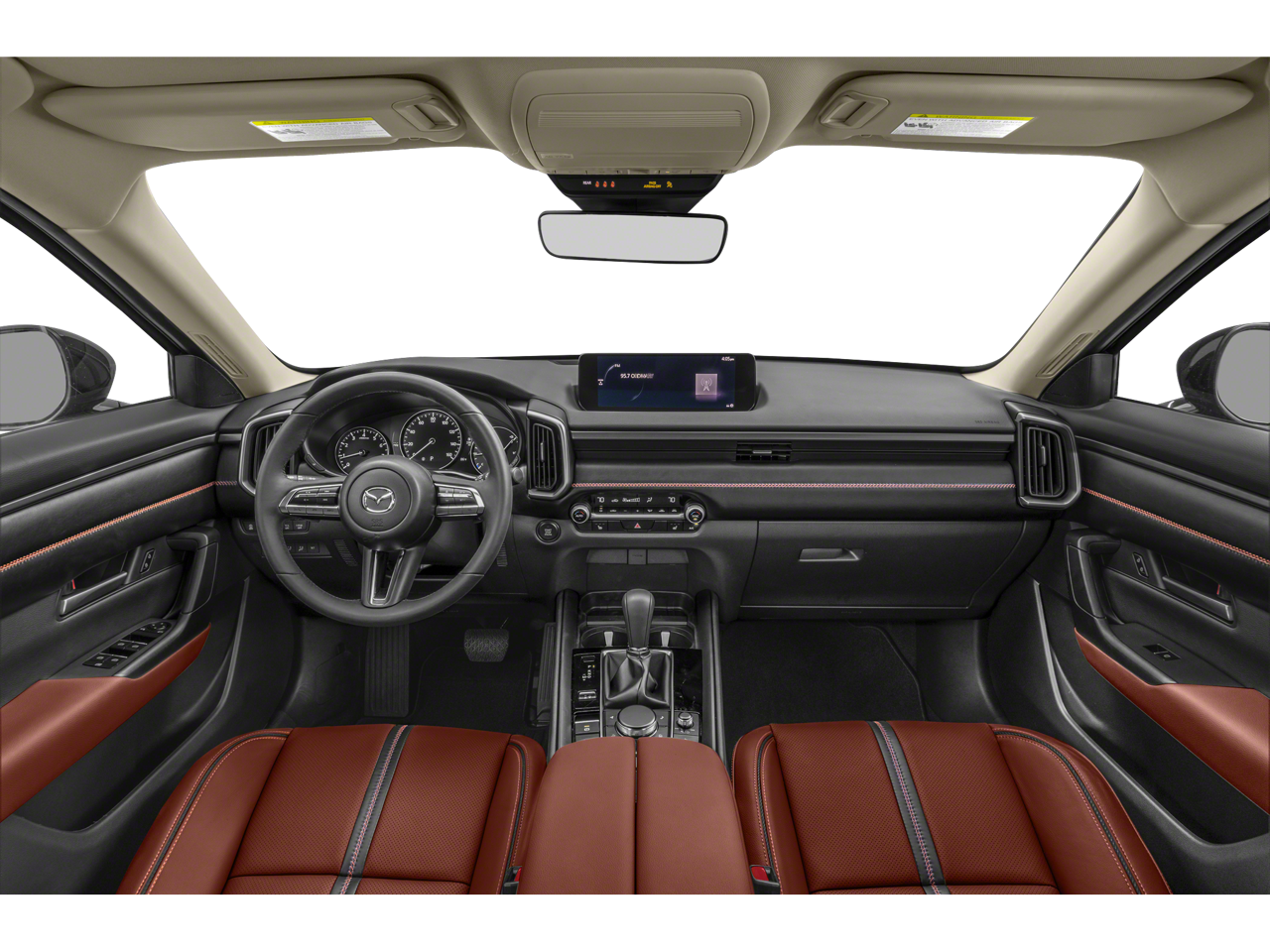 12 Speakers, 4-Wheel Disc Brakes, ABS brakes, Air Conditioning, Alloy wheels, AM/FM radio: SiriusXM, AppLink/Apple CarPlay and Android Auto, Auto High-beam Headlights, Auto-dimming Rear-View mirror, Automatic temperature control, Brake assist, Bumpers: body-color, Carpet Cargo Mat, Compass, Delay-off headlights, Driver door bin, Driver vanity mirror, Dual front impact airbags, Dual front side impact airbags, Electronic Stability Control, Emergency communication system: MAZDA CONNECT, Exterior Parking Camera Rear, Front anti-roll bar, Front Bucket Seats, Front Center Armrest, Front dual zone A/C, Front reading lights, Front wheel independent suspension, Fully automatic headlights, Garage door transmitter: HomeLink, Heated and Ventilated Front Seats with 3 Level Adjustment, Heated door mirrors, Heated front seats, Heated rear seats, Heated steering wheel, Illuminated entry, Knee airbag, Leather Seat Trim, Leather Shift Knob, Leather steering wheel, Low tire pressure warning, Memory seat, Navigation system: MAZDA CONNECT, Occupant sensing airbag, Outside temperature display, Overhead airbag, Overhead console, Panic alarm, Passenger door bin, Passenger vanity mirror, Power door mirrors, Power driver seat, Power Liftgate, Power moonroof, Power passenger seat, Power steering, Power windows, Radio data system, Radio: AM/FM/HD Bose 12-Speaker Audio Sound System and Navigation, Rain sensing wipers, Rear seat center armrest, Rear window defroster, Rear window wiper, Remote keyless entry, Speed control, Speed-sensing steering, Split folding rear seat, Spoiler, Steering wheel mounted audio controls, Tachometer, Telescoping steering wheel, Tilt steering wheel, Traction control, Trailer Hitch with 7-Pin Harness, Trip computer, Turn signal indicator mirrors, Variably intermittent wipers, Ventilated front seats, Wheels: 18 x 8J Aluminum Alloy Black Metallic, Zircon Sand Metallic Paint Charge.