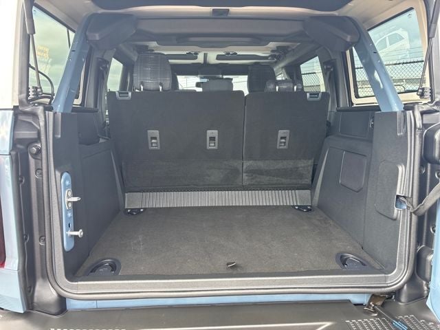 The Bronco's Azure Gray Metallic Tri-Coat exterior is a stunning complement to the Gray interior, creating a truly eye-catching presence. The custom accessory door storage bags and Trail Control, Trail Turn Assist, and Trail One-Pedal Driving features add both functionality and convenience.